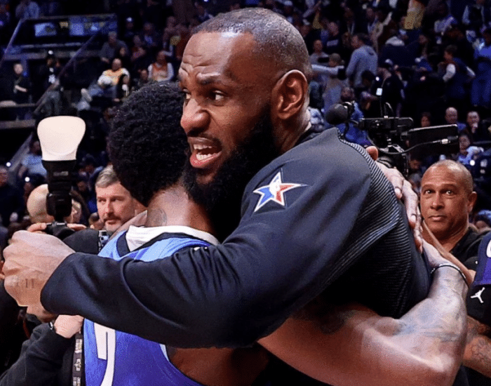 在今年全明星周末,詹姆斯和欧文之间的互动很多,更衣室中开心拥抱,西部球星合影时欧文坐在詹姆斯的身旁,队长选人组队时,詹姆斯首发第二位挑选欧文,詹欧紧紧拥抱并且开怀大笑,美媒调侃东契奇吃醋了,当时老詹称欧文为“年轻的上帝”;赛后詹欧更是公开表达兄弟情。