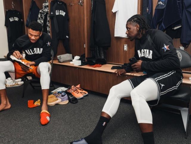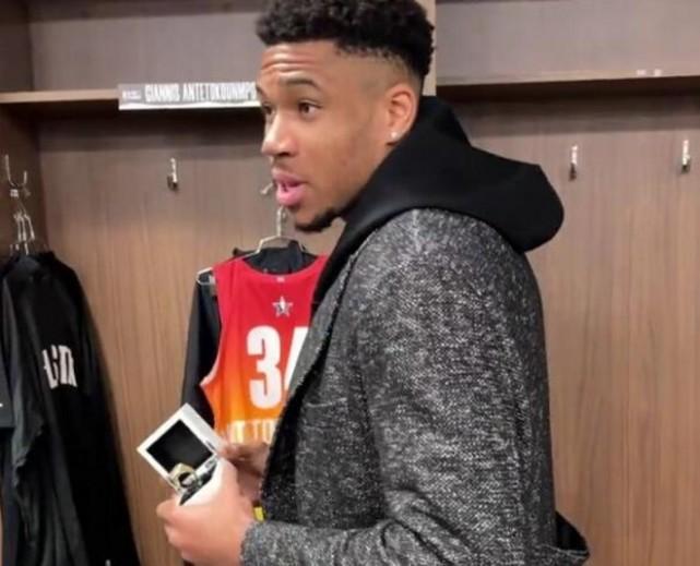 赛前来到更衣室,字母哥看到椅子上的全明星戒指,不禁感叹:“我有7个,勒布朗有19个哦。”自1983年以来NBA就一直有全明星戒指的传统,NBA全明星戒指被授予球员以表彰他们入选全明星。