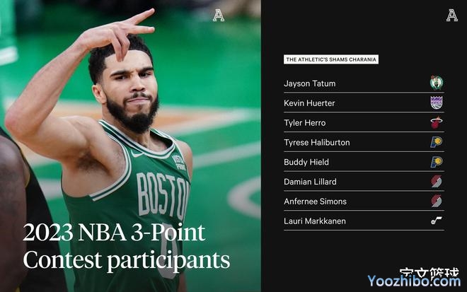 在参赛选手中,塔图姆、利拉德、哈利伯顿和马尔卡宁除了参加三分赛以外,都将参与到全明星周末的正赛之中,其中塔图姆更是会出任首发,可以说是参赛选手之中最大牌的球员。除此以外,希尔德曾在2020全明星周末的三分球大赛中夺冠。