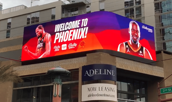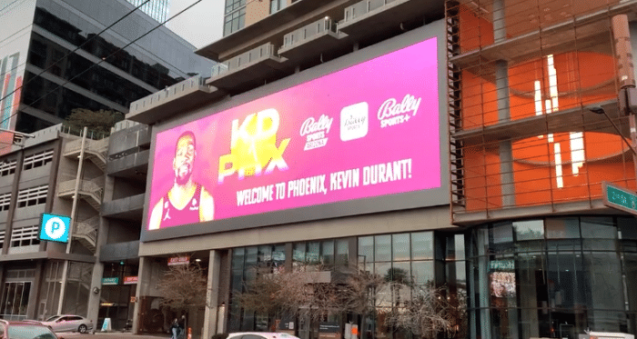 “欢迎杜兰特来到菲尼克斯”,太阳当地已经出现多处欢迎KD的广告牌,杜兰特的太阳队35号球衣已经在商店中全面上架,商店中挂满了杜兰特的球衣,还贴着杜兰特身穿太阳球衣的海报。