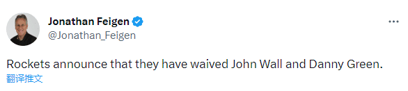 火箭官方宣布,球队正式裁掉了约翰-沃尔与丹尼-格林,度过澄清期后,二者将成为完全自由球员。