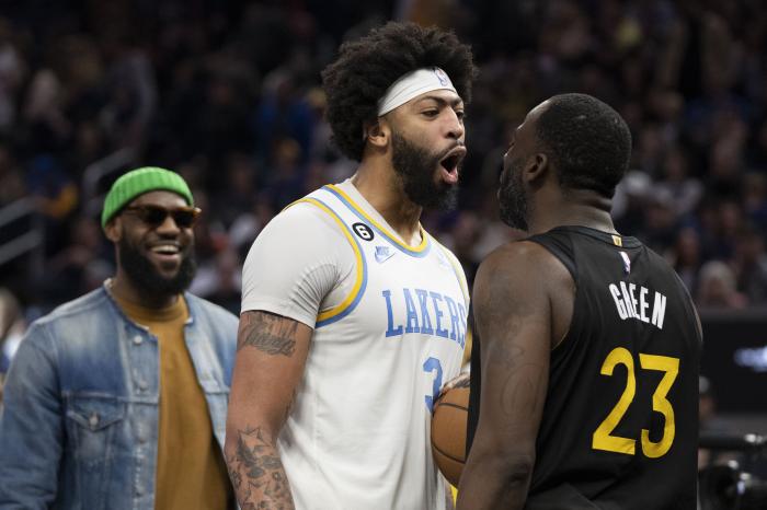 詹姆斯弯腰走光一幕曝光!笑看浓眉格林互喷 赛后发推庆祝胜利