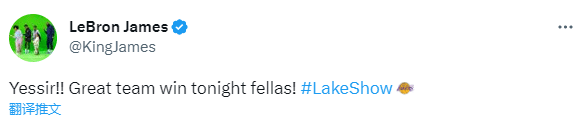 詹姆斯因伤缺席比赛,坐在场边观战十分抢镜,尤其是老詹入场落座时,小球迷捂嘴惊讶一幕引热议,赛后詹姆斯和小球迷开心合影,并且发推写道:兄弟们,今晚是一场很棒的团队胜利!#湖人秀。