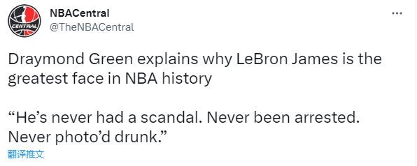 即使38岁,詹姆斯仍旧是联盟人气最高的球星,仍旧是联盟的门面,勇士球星德拉蒙德-格林再次盛赞詹姆斯:他是NBA有史以来最伟大的门面球员。想想我们现在所生活的时代,遍地都是相机还有社交媒体,但他从未有过丑闻,他从未被捕,从来没有醉酒的照片。