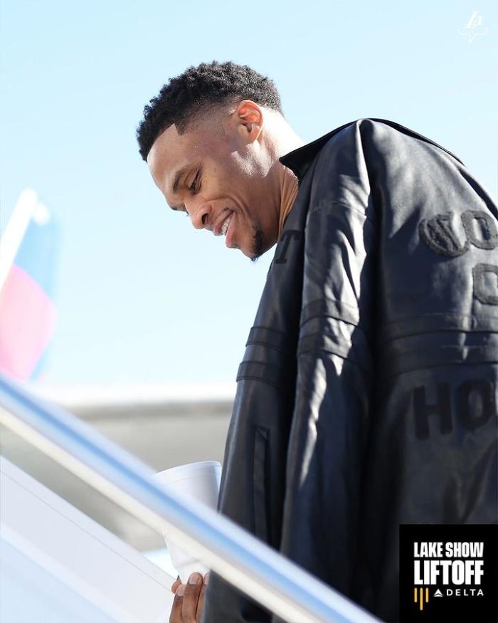 根据赛程,湖人下一场将挑战凯尔特人,目前湖人众将已经飞往波士顿,38岁詹姆斯表情严肃,一手拿着证件、一手提着包包,身穿短裤和短袖,湖人全队就老詹一人穿着短裤短袖;浓眉身穿运动装,同样一脸严肃;威少、八村垒和威少等人则满脸笑容。