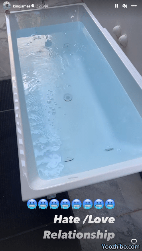 詹姆斯的职业生涯能够如此持久且伟大,其中一大原因是老詹是联盟自律的典范;不久前,詹姆斯在社媒上晒出他打算冰浴理疗身体的画面,配文写道:爱恨交织,还配上多个冷得发抖的表情。