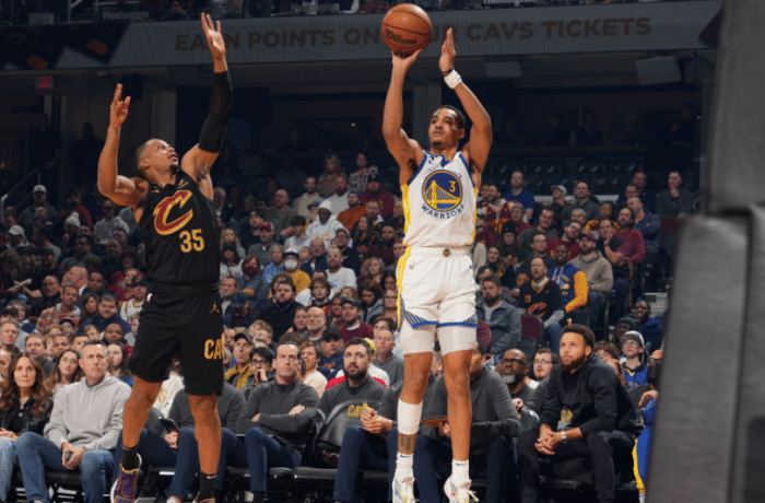 下半场,勇士第三节继续下起三分雨,普尔、杰罗姆、库明加和迪温琴佐为勇士接连轰进5记三分,勇士打出25-10攻势瞬间领先到20分,之后加兰和乐福助骑士反扑追分,三节打完,勇士98-86领先骑士12分,单节又命中6记三分。