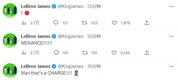 在丹尼斯-施罗德命中关键上篮后,詹姆斯写道:Menance!(注:詹姆斯给施罗德取的外号)