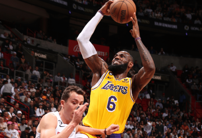 24直播网12月29日讯 ,NBA常规赛湖人客场98-112背靠背不敌热火,詹姆斯全场出战34分钟,18投10中拿到27分9篮板6助攻6失误,第一节独砍12分,可湖人第三节一度落后22分,末节詹姆斯累得弯腰扶膝直喘粗气以及顺势躺在地板上,关键时刻连续失误,湖人最后3分半钟集体哑火,最后212秒全队0分。