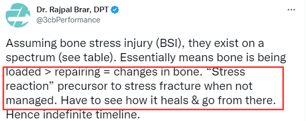 6、医学专家Rajpal Brar表示浓眉需要慢慢养伤,痊愈才能复出;若带伤提前复出,浓眉的右脚应力性损伤可能加重为应力性骨折。