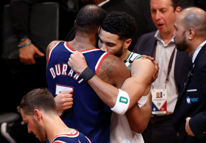 在个人荣誉方面,杜兰特4次拿到得分王、12次入选全明星、11次最佳阵容、1次MVP、2次总冠军和2次FMVP;塔图姆则是3次入选全明星、2次最佳阵容以及1次东决MVP。