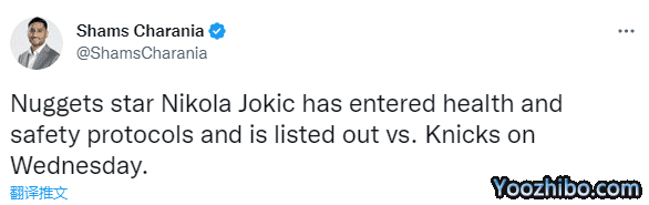 突发!约基奇触发健康与安全协议 确定缺战尼克斯或缺席多场比赛