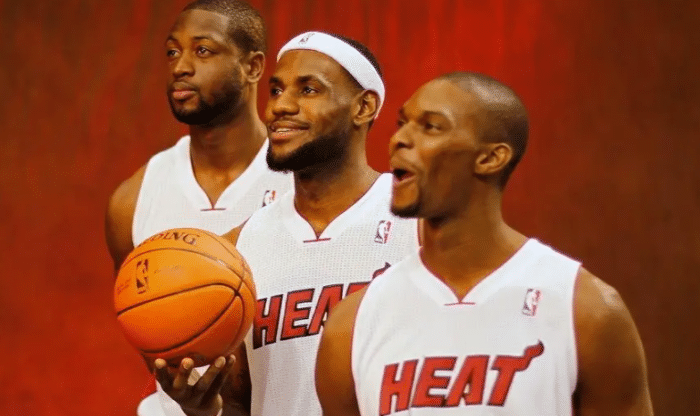 热火组建三巨头在当时引起整个NBA的震动,甚至是历史上最让人感到不可思议的操作。不过,由于詹姆斯、韦德和波什在合作第一年,他们之间默契度不够,而且,主帅斯波也没有确定第一核心,热火队在总决赛中被独行侠队逆转。而到了11-12赛季,韦德将热火队的旗帜正式交给了詹姆斯,他甘愿辅佐,于是,詹姆斯在2012年和2013年,连续两年带领热火队夺冠,这也是热火队史最鼎盛的一段时期。