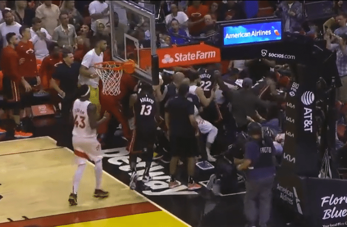 抱摔到观众席!NBA上演火爆冲突,两悍将直接被驱逐,场面太混乱