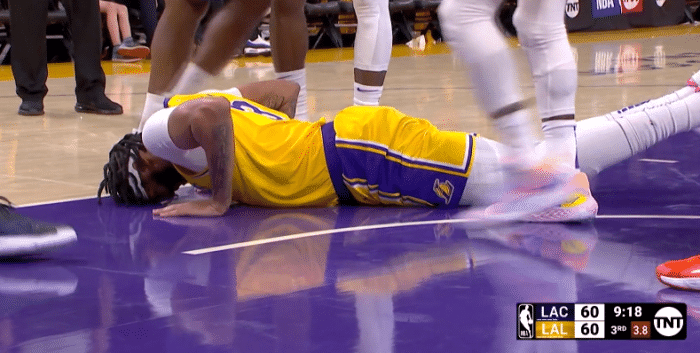 湖人惊险一幕:浓眉重摔倒地险受伤并接受治疗 小卡第一时间关心他