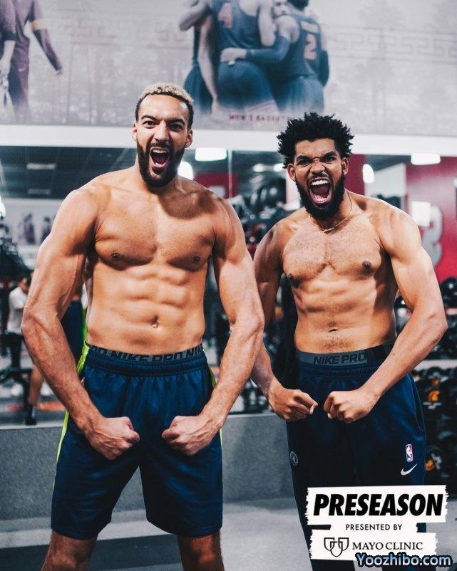 24直播网10月09日森林狼官方晒出了唐斯和戈贝尔赤膊训练的合影,两人冲着镜头大吼,一身肌肉令人印象深刻。森林狼打造的新双塔,已经成了两位魔鬼筋肉人。