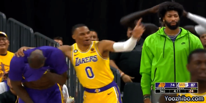 湖人替补席吃T:主帅摊手抱怨詹姆斯捂脸大笑 威少摇手指抗议