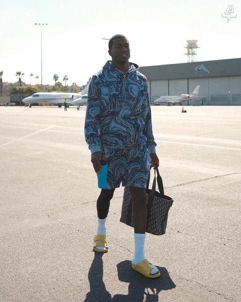 威少穿着一身黑色服装并且戴着黑色帽子,斜挎包包一脸笑容;此前湖人惨败,威少在有限的上场时间内,进攻端侵略性十足,不过防守积极性有待提高,总的来说,威少的表现还是不错的。