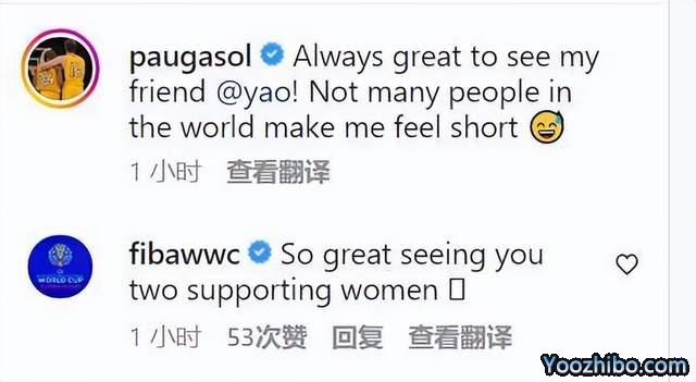 来源:24直播网10-03 16:0624直播网10月03日讯 ,前NBA球星大加索尔更新社媒,晒出了一张自己和姚明在女篮世界杯上的合影。合影中,2米13的大加站在2米26的姚明身边。大加配文写道:“见到我的朋友姚明总是很高兴!世界上没有几个人能让我感觉自己矮小。” FIBA女篮世界杯官媒留言道:“很高兴看到你们对女性的支持。”