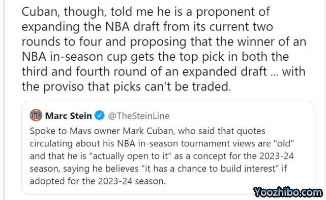 库班又有新点子:将NBA选秀扩大至四轮 季中锦标赛胜者可获优势