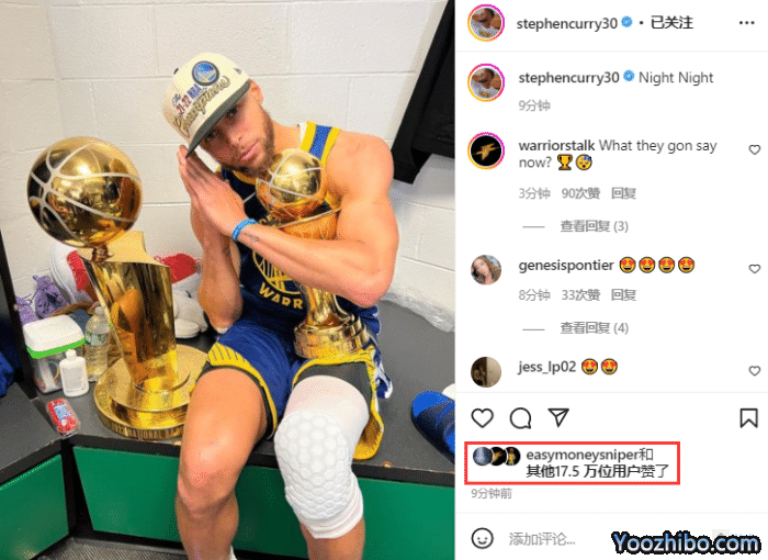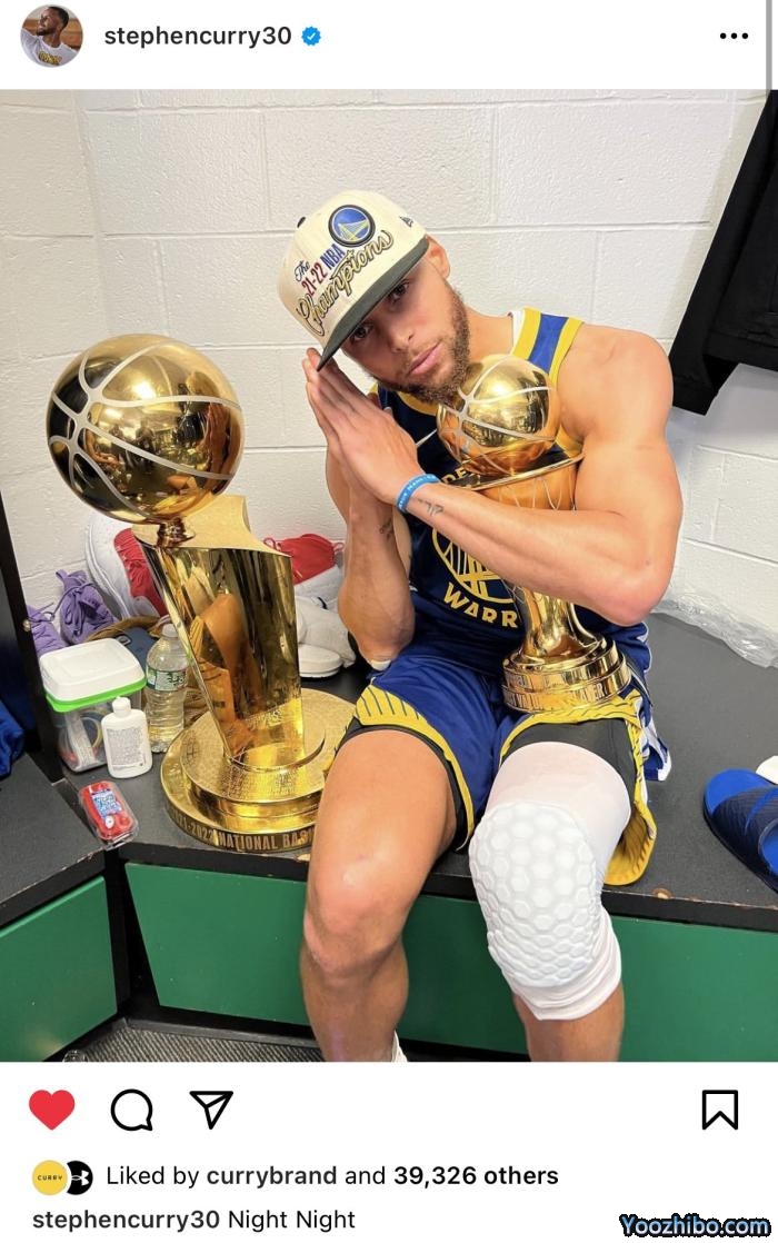 杜兰特亲自点赞!库里晒照庆祝夺冠+FMVP 比出经典手势直呼晚安