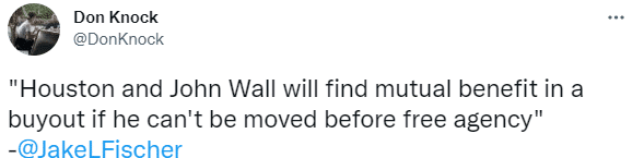 据报道,如果火箭不能把沃尔交易出去,他们将会买断后者的合同;本赛季,沃尔和火箭达成不上场的协议,躺赚4385万美元,新赛季,31岁沃尔的年薪是4687万美元。