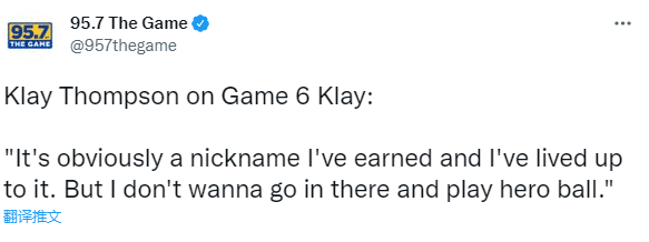 谈到自己的G6汤称号,克莱表示:显然,这个外号是我自己赢回来的,我没有辜负它,但我不想球队需要我去投英雄球。