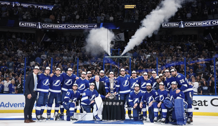 来源:24直播网06-15 11:4024直播网06月15日讯 本赛季NHL斯坦利杯总决赛,坦帕湾闪电连续3年晋级总决赛,此前他们均夺冠,这次遇到的是科罗拉多雪崩的挑战。闪电已经在季后赛系列赛中取得十一连胜,再赢一场他们就可以连续3个赛季捧起斯坦利杯。就在近期,NBA传奇球星詹姆斯也来观战,而且还触摸了斯坦利杯。