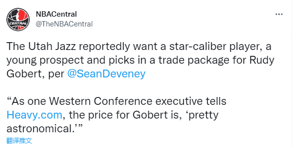 一位西部的匿名高管向其透露,爵士对于戈贝尔的要价很高,可以用天文数字来形容。