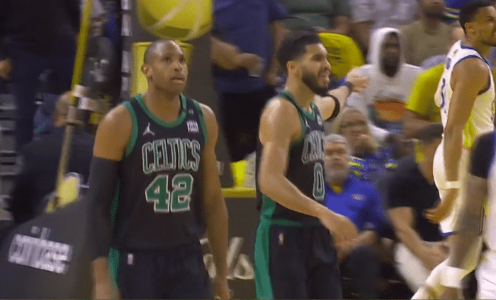 第二节的比赛开始后,勇士进攻端的效率有所下降,罗威造犯规两罚全中,普尔撤步三分命中,格林抢断反击造犯规两罚全中,斯玛特塔图姆带队轰出一波6:0的小高潮,分差瞬间回到了6分,勇士5分钟的时间仅仅得到了5分,库里重新回到了场上。两队进攻端连续不中,格林反击一条龙抛投命中,维金斯突破上篮命中并且造成了犯规,凯尔特人前12次三分出手全部打铁,塔图姆三分投射终于命中,伊戈达拉送妙传,小佩顿篮下得分,霍福德三分命中,维金斯后转身投射得分,斯玛特三分投射也有,库里上篮造犯规,比赛进入暂停,勇士领先8分。