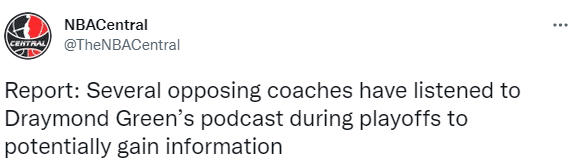 据露天看台记者杰克-费舍尔报道:毫无疑问,几位波士顿的教练正在关注格林的每一集播客,达拉斯独行侠的工作人员至少在西部决赛期间也监控了格林播客提要的片段以获取信息。