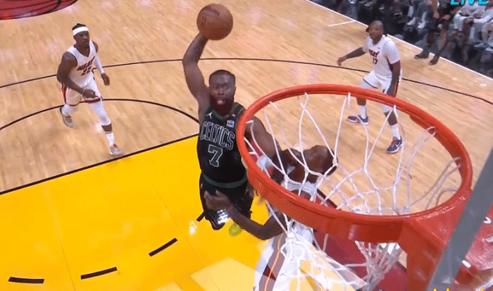 全场比赛,凯尔特人布朗25分,塔图姆22分12板9助,霍福德16分7板5助,怀特14分5助。而热火方面阿德巴约18分1-板,巴特勒13分6板4助,文森特15分,罗宾逊11分4板。对于热火来说,他们已经被逼入绝境。