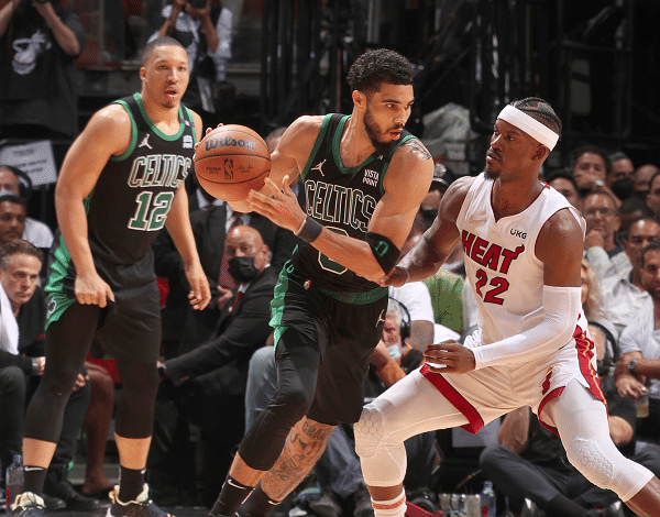 下半场,巴特勒第三节依旧没有状态,单节4投1中仅2分,热火突然溃败,三节16-32净输16分,第三节最后时刻被打10-0分;塔图姆和布朗双探花单节15分找回状态,比赛势头已经来到绿军这边。