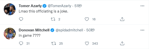 名记Tomer Azarly发推:哈哈,这裁判就是一个笑话。