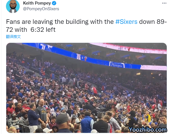 G6还剩1分多钟,恩比德下场放弃比赛,坐在替补席双手抱头十分沮丧,低头失落快哭了;里弗斯则是脸色铁青;赛后恩比德长时间坐在替补席,之后拥抱恭喜巴特勒,不过镜头一直没有拍到哈登,貌似他早已提前离场。