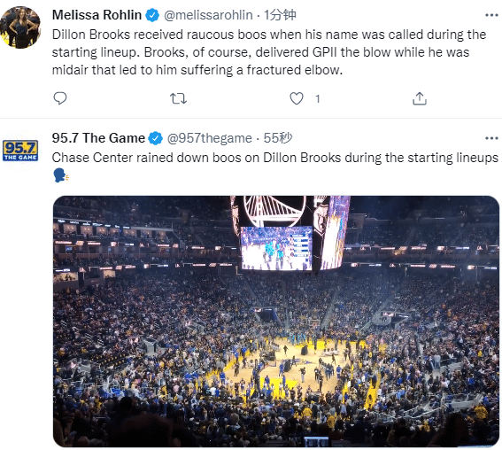 赛前狄龙-布鲁克斯亮相时惨遭狂嘘,此前狄龙恶犯导致小佩顿手肘骨折;今日一战,勇士和灰熊外线进攻都十分糟糕,勇士首节三分10投0中疯狂打铁,第二节依旧打铁,前15次三分都打铁不中,都快把篮筐砸歪了,奥托-波特为勇士投进本场第一记三分。
