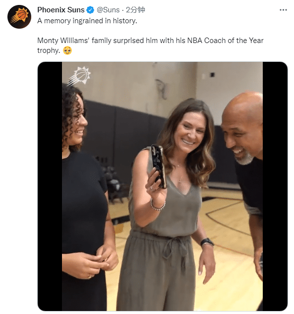 NBA官宣!太阳主帅蒙蒂-威廉姆斯夺最佳主教练创纪录