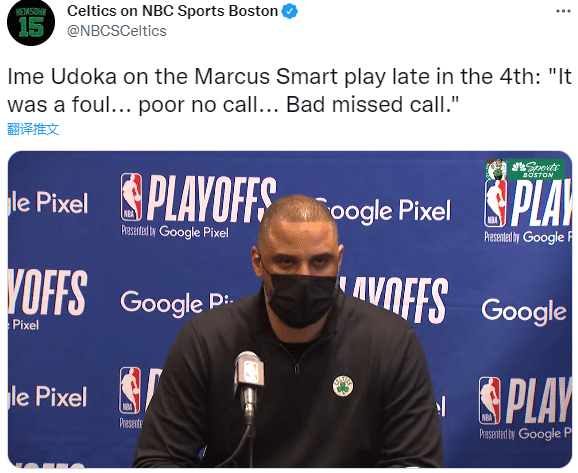 凯尔特人主帅吐槽裁判,乌度卡表示:裁判告诉我‘只要我们不倒下,他就不会吹对手进攻犯规’;早知道我应该教我的球员球员们多来几次假摔(flop),我猜裁判喜欢球员多假摔。