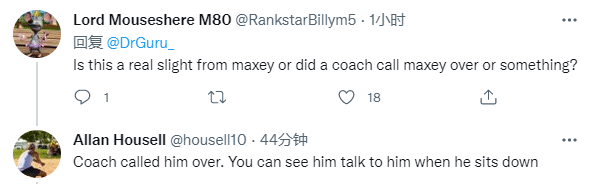 第四节4分40多秒,76人换下主力时,哈登先是和小乔丹坐在一起,马克西则是坐在别的空位上,之后哈登起身换座,把坐垫扔在地板上,并且和马克西坐在一起,可马克西起身走开,并且坐在小乔丹身旁,美自媒体晒这一幕表示马克西不愿坐在哈登身旁,还说马克西对哈登爆粗:你TM烂透了。