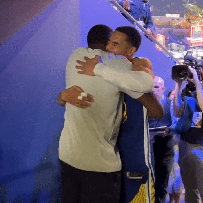 勇士疯狂庆祝曝光!格林拥抱众队友宣泄情绪,搂库里高呼:你说过的