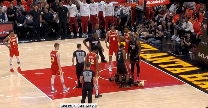 第四节,文森特传球,巴特勒空切暴扣。邓肯-罗宾逊三分球不中,巴特勒抢到进攻篮板之后助攻戴德蒙篮下打进。巴特勒助攻邓肯-罗宾逊命中三分球。老鹰一波流缩小差距,当奥孔武的2+1让老鹰反超3分,巴特勒立刻用三分球回应,扳平比分。特雷杨两罚全中之后,巴特勒助攻塔克在底角命中三分球,热火再度领先。巴特勒关键跳投没有命中,特雷-杨在还剩下4.4秒的时候抛投打进,热火落后1分。最后时刻,巴特勒投丢绝杀的三分球,热火一分惜败。