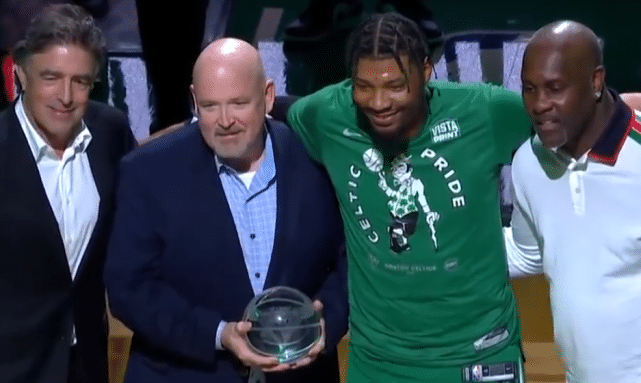 这一幕堪称是杀人诛心,不仅打进了关键球,浇灭了篮网翻盘的气焰,同时还与杰伦布朗上演一起“观掌”的名场面,堪称本轮系列赛的名场面。