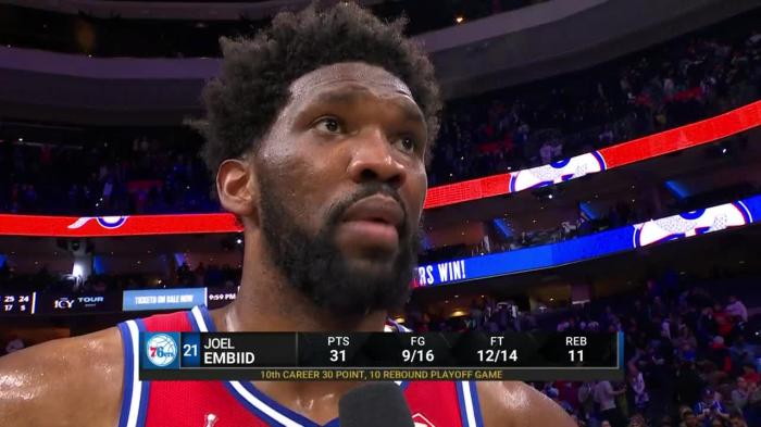 比赛失去悬念时,猛龙主帅纳斯和恩比德进行了一番激烈的交流,恩比德走开时,一脸生气和发狠的表情;系列赛G2,恩比德一个人14次罚球,猛龙全队仅12次罚球,76人全队则是有30次罚球,如此巨大的差距引热议。