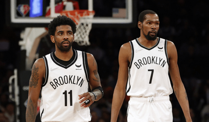 杜兰特和欧文成为篮网队史第三对在同场比赛中都拿到至少25分10助攻的队友。比赛结束之后的新闻发布会,欧文和杜兰特还非常甜的相互说“我爱你”,也被不少球迷表示太磕711组合了: