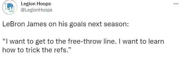 詹姆斯还强调:听着,我会解决它的。我以前的罚球数排在联盟前列,以前是靠前的。在我去迈阿密之前,我场均罚球数排名联盟前列;可是我去了那里之后,他们就那样做了。