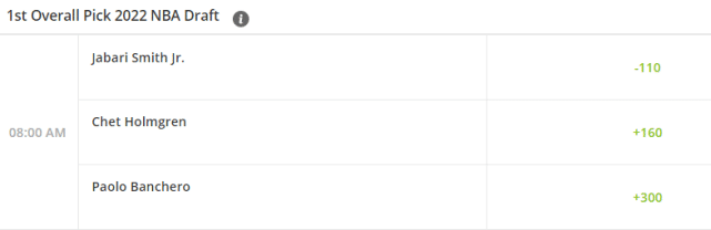 2022年NBA状元秀的赔率正式出炉!根据目前的赔率,奥本大学的贾巴里-史密斯成为状元最大热门,他当选状元的赔率是-110,紧随其后的是冈扎加大学的切特-霍姆格伦,他当选状元的赔率是+160。排名第三的是杜克大学的保罗-班切罗,他当选状元的赔率是+300。