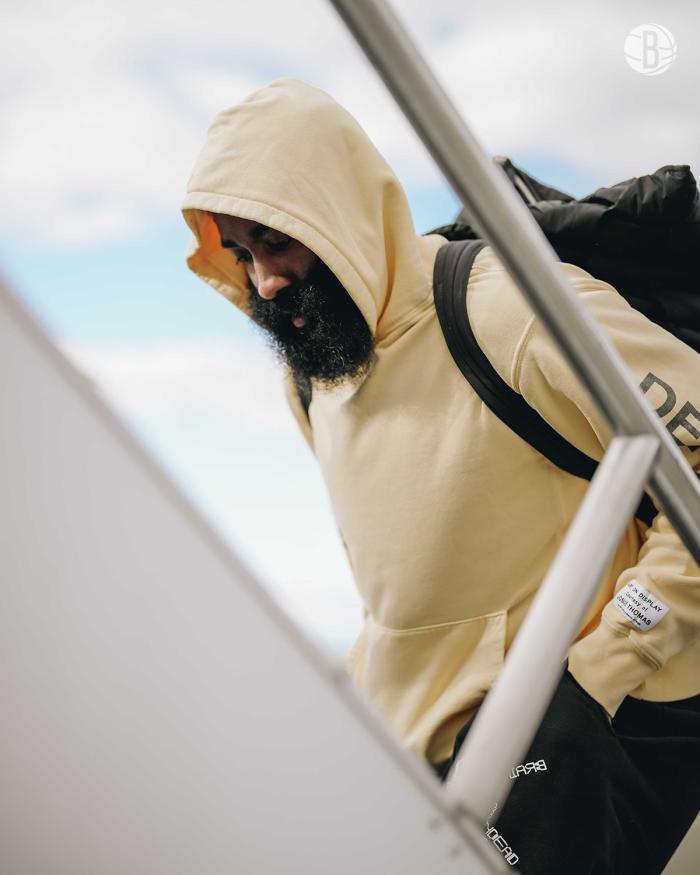 哈登也是身穿黑色运动裤,搭配米黄色连帽卫衣,背着双肩包并且双手抄兜,登机时同样表情严肃;杜兰特和哈登带队出征,欧文确定缺席新赛季揭幕战,他并没有随队出征,此前篮网已经宣布无限期禁赛欧文,不过欧文被禁赛后,现身野球场打橄榄球又引争议。