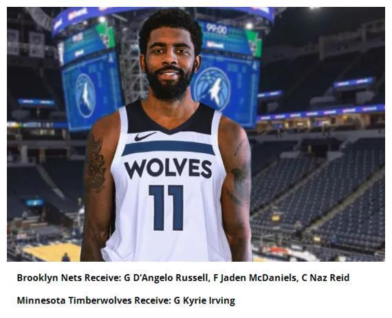 据爆料王Shams报道,虽然欧文的交易价值下降,但还是有球队流露出对他的兴趣。近日也有美媒建议篮网送出欧文,从森林狼换来拉塞尔、麦克丹尼尔斯和里德。