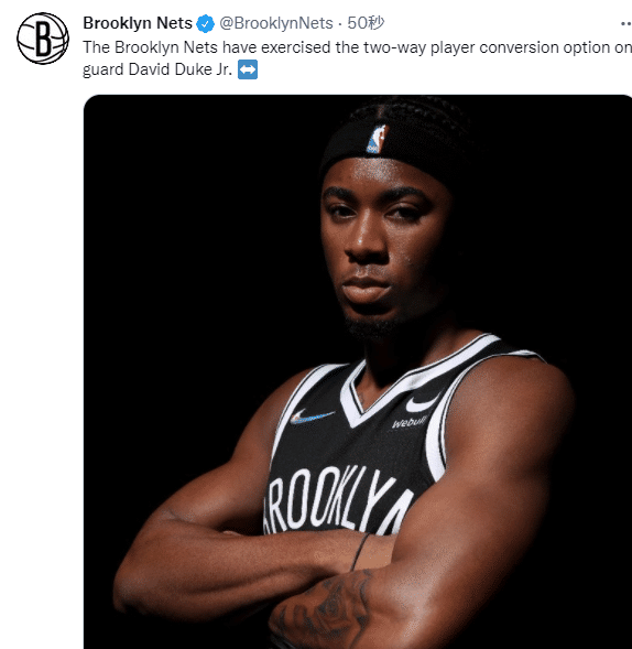 裁员之后,篮网宣布把后卫大卫-杜克的训练营合同转为双向合同,22岁杜克是今年落选秀,季前赛,杜克为篮网出战3场,场均上场16.6分钟得到4.3分、4.0个篮板、1.3次助攻和1.0次抢断,三分命中率50%;赶上篮网末班车,并且挤掉湖人旧将卡考克。