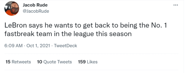 回到快攻第一的位置?詹姆斯的记忆可能有些偏差。自从他加盟湖人以来,球队的场均快攻得分从未排名联盟第一,但也相当接近了。2018-19赛季,湖人的场均快攻得分是19.3分,位居联盟第二;2019-20赛季,湖人的场均快攻得分是18.4分,同样排名联盟第二;2020-21赛季,湖人的场均快攻得分只有13.3分,仅排联盟第11位。